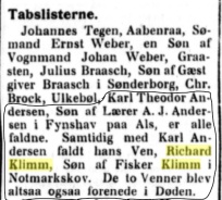De faldt begge den 09.08.1916 ved Høj 304 ved Verdun, dagen efter Richards 20-års fødselsdag. Richards dødsfald er registreret i personregistret for Lysabild den 01.10.1916.