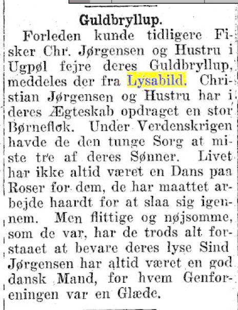 I 1927 fejrede Christian og Cecilie Jørgensen guldbryllup. De nåede også at fejre diamantbryllup.